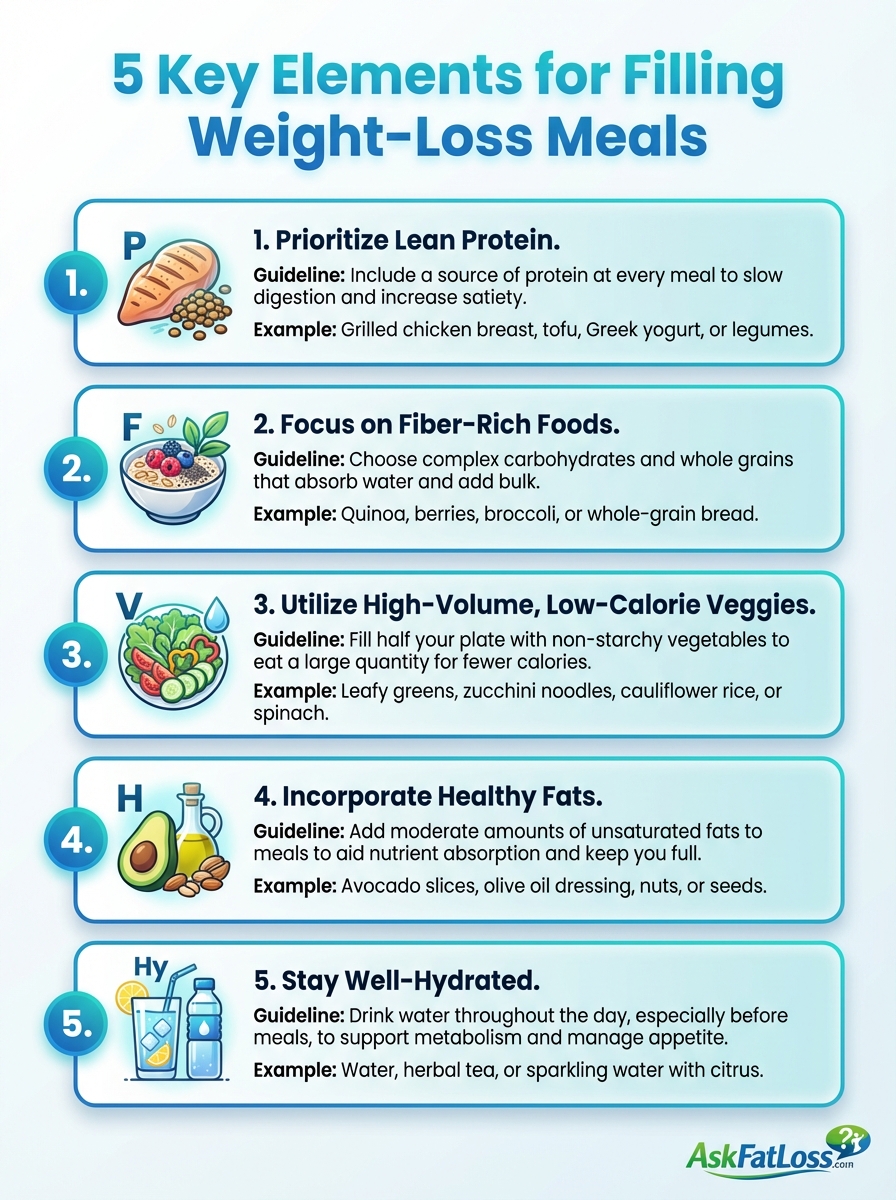 Fiber improves satiety in people on a calorie restricted diet, and high protein supports fullness as well as muscle retention. That is why the best weight loss meal plan usually looks like a protein weight loss meal plan combined with a high fiber eating pattern.2. A High Protein Breakfast That Keeps You Full Until Lunch